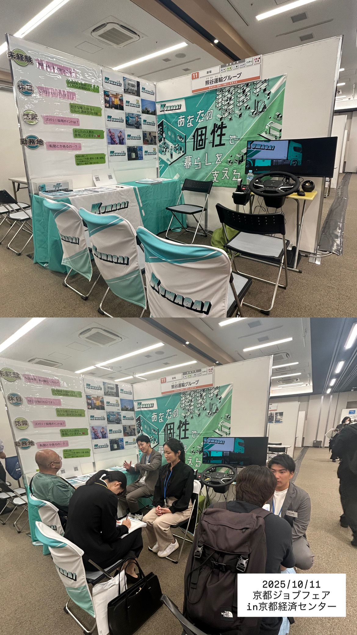 こんにちは!熊谷運輸です! 先日11日(土)に京都ジョブフェアに参加しました。 数時間と短いにも関わらず、たくさんの方とお話することができました◎ (椅子が足りなくなる場面も...Σ(・□・;)) 皆さんのご都合よい日時で会社見学を行うことも可能です。 ぜひお気軽にご連絡くださいね❁