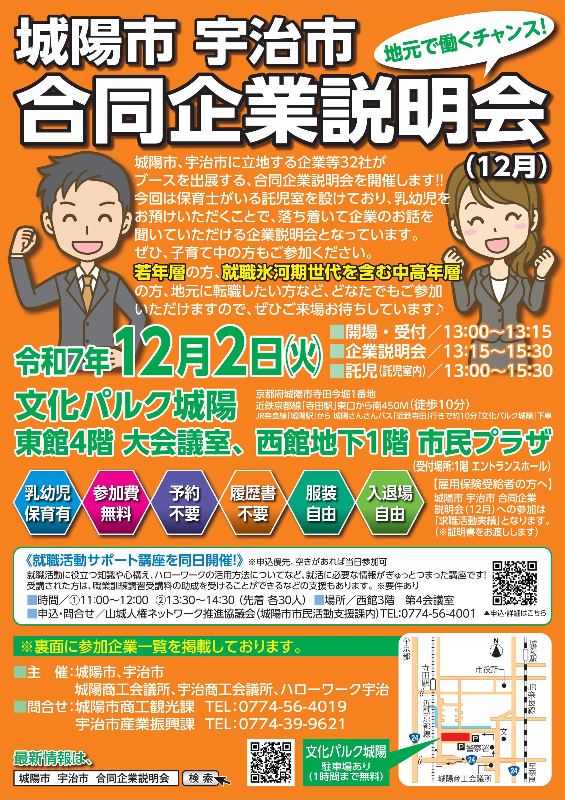 12/2(火) 城陽市 宇治市 合同企業説明会 に参加します☆彡